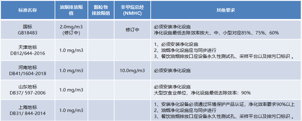 新興榮福收集各地《飲食業(yè)油煙排放標(biāo)準(zhǔn)》中對油煙排放濃度的規(guī)定:
