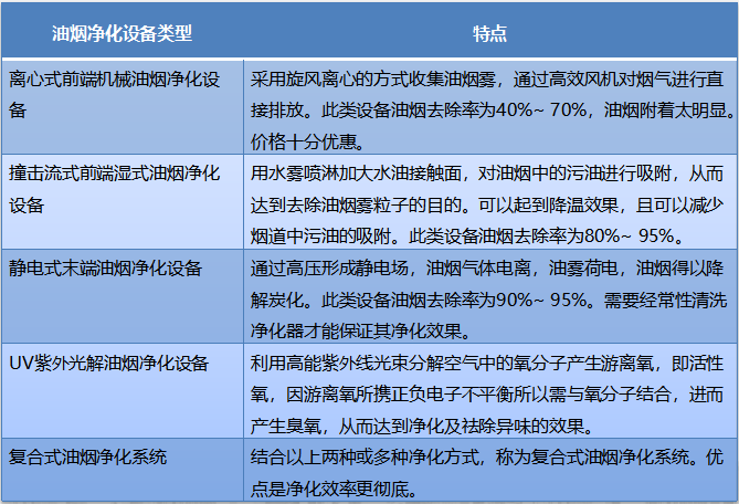 各標(biāo)準(zhǔn)已明確規(guī)定,必須安裝油煙凈化設(shè)備。新興榮福收集現(xiàn)行市場上的油煙凈化方式,主要分以下幾種:離心式前端機(jī)械油煙凈化設(shè)備、撞擊流式前端濕式油煙凈化設(shè)備、靜電式末端油煙凈化設(shè)備、UV紫外光解體油煙凈化設(shè)備和復(fù)合式油煙凈化系統(tǒng)。這幾類凈化系統(tǒng)各有優(yōu)勢,新興榮福為大家簡單介紹一下: